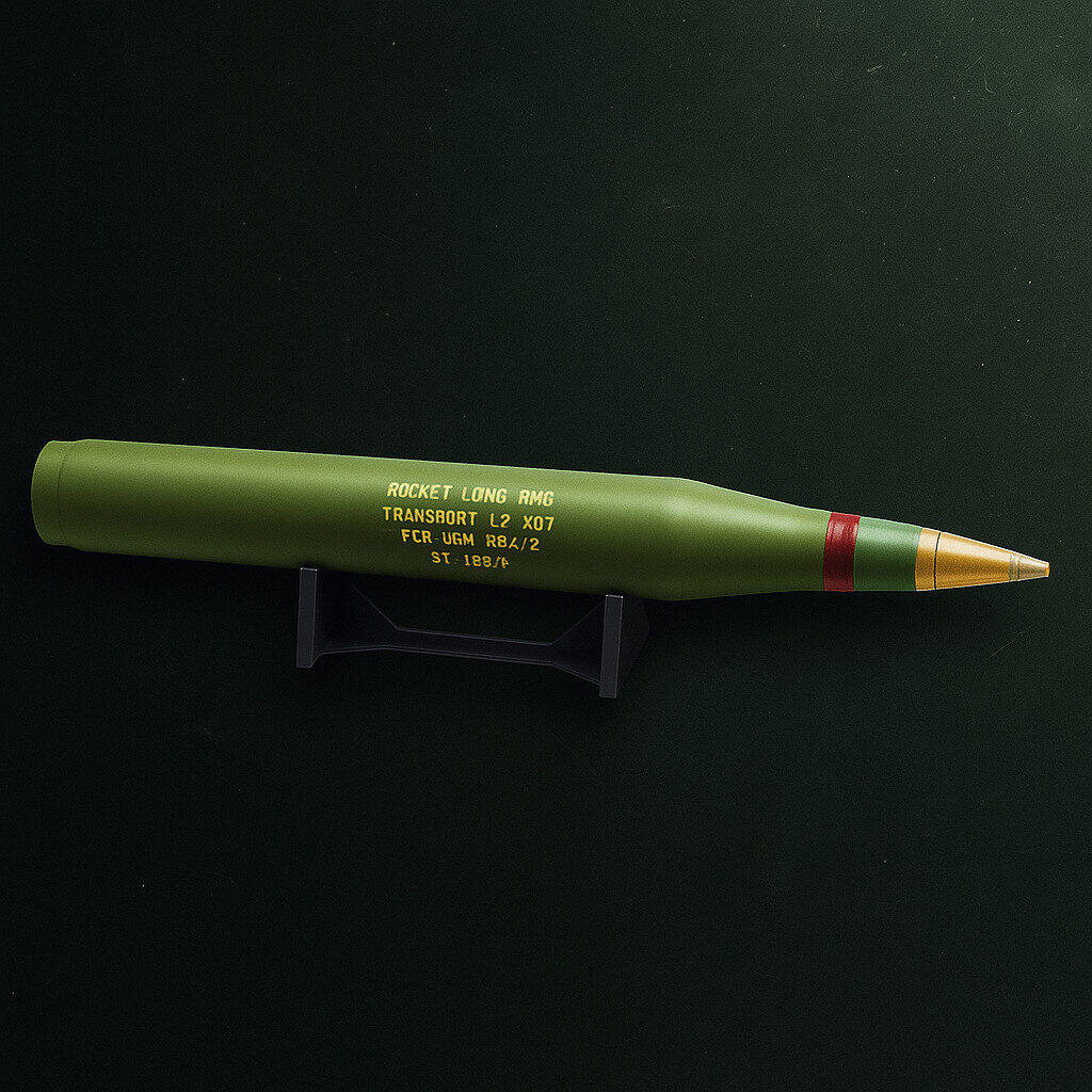 Rocket G-2000/45 is fully compatiЫe with the mobile multi tube rocket launchers such as ВМ-21 and RM-70, or similar existing launchers. Propellant grain is а single cylindrically shaped piece, which is inhibited along the outer surface and front end. lt contains two types of propellant, which differ in burning rate. This has resulted in а high level loading factor, almost neutral burning and minimization of the silver being used.