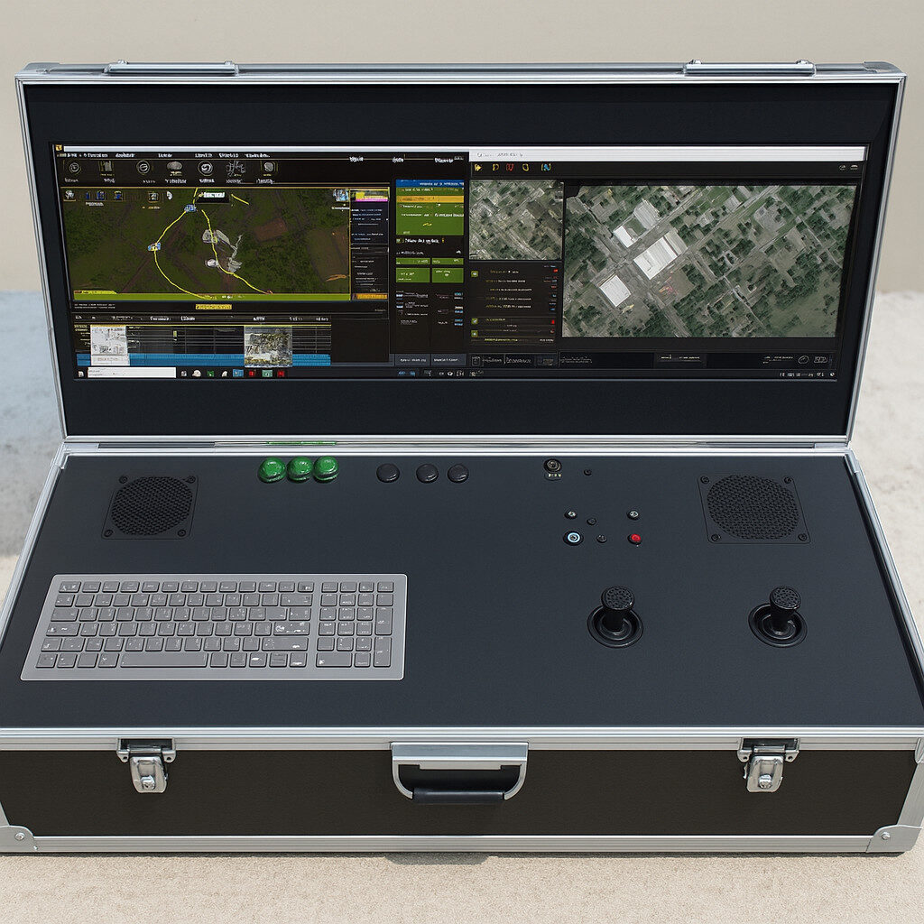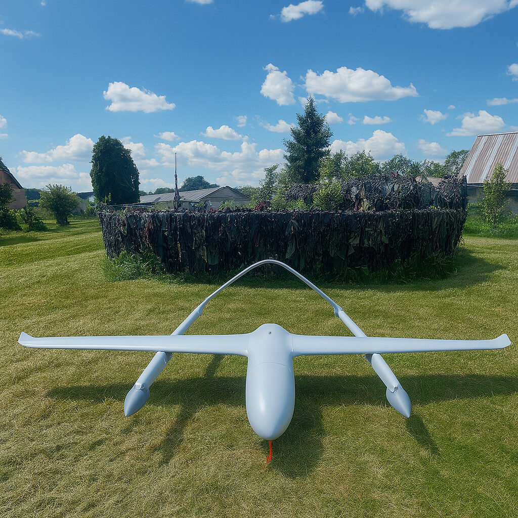 Hunter-1L is a very quiet, AI-powered, electric VTOL UAV with two independent power systems. It can be used for both reconnaissance and precision bombing with long-range munitions drop and FPV. The plastic container can hold three GM5 glide bombs or one GM12.