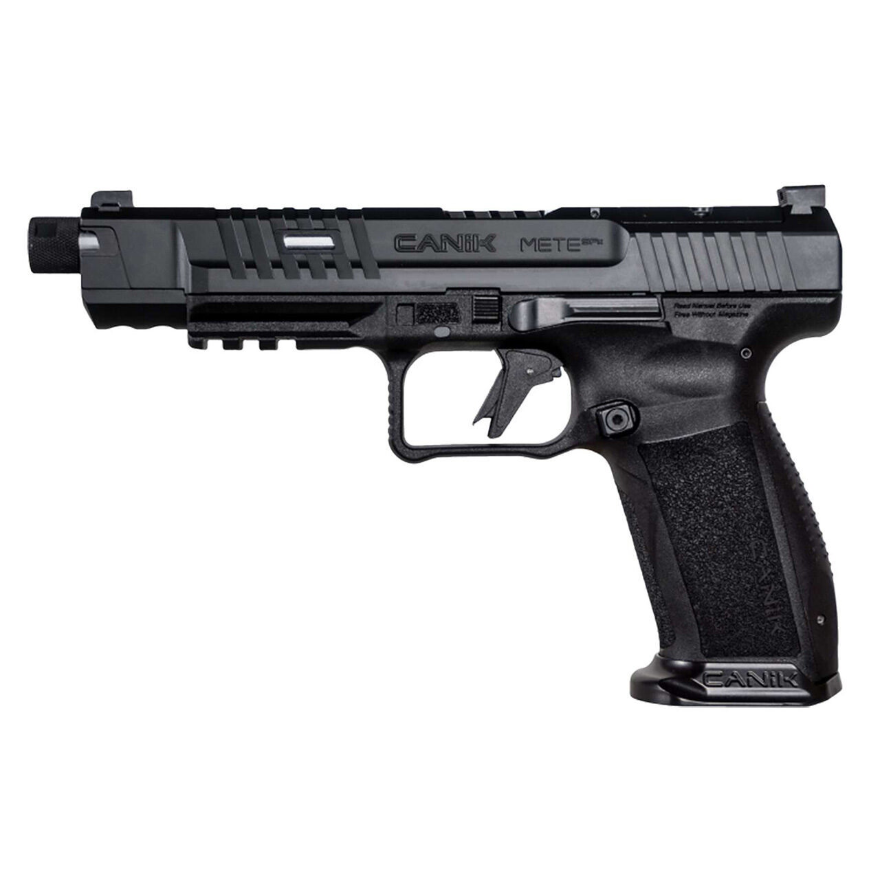 METE SFx PRO has the superior technology and new features of the new METE series. The beavertail, whose ergonomics has been increased with the renewed frame design of the new METE series, allows you to grip the gun more comfortably, while the trigger guard allows your support hand to grip it very well. One of the features brought by the new design of the pistol is the “Fit and Lock” feature that makes it easier to lock the holster. Therefore, the new METE series can be used more effectively with appropriately designed holster. Another noticeable feature of the new frame design is that it has a completely modular frame design. In addition, the pistol can be easily disassemble without the need for any extra materials other than the CANiK punch that comes with your pistol. This practical and useful feature is provided by the new design of the 36 mm double-sided slide holder. The new frame design with a self-flared magwell allows the shooter to change the magazine faster split time makes a difference.The legendary CANiK trigger is available in a polymer with 90⁰ break. Like all METE series pistols, the METE SFx PRO is equipped with an angled sight that makes it easy to rackign your pistol with one hand in an emergency situation. This sight also has a design that can be used with optics. New optics-ready slide accepts all micro-optics especially Trijicon RMRcc. METE SFx PRO uses a sight set consisting of a tritium front sight and blacked out rear sight has a 146 mm (5.74 inch) threaded barrel with thread protecter cap.